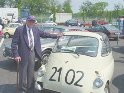 Jerry Zabin near an Isetta BMW 300 Convertible 1957